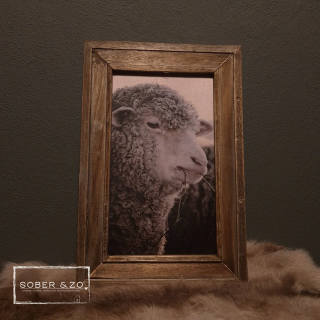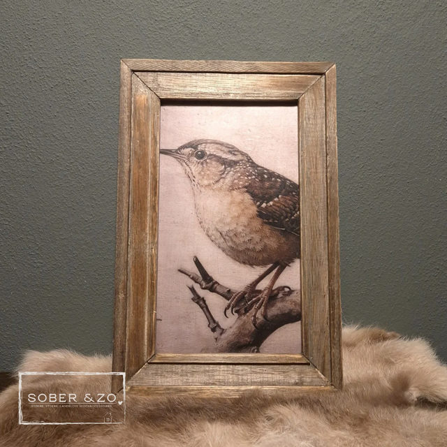 Mooie foto/afbeelding van dieren op hout, incl lijstje.