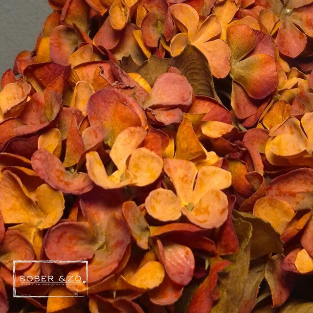 Mooie echt lijkende oranje/rode hortensia tak van Countryfield.