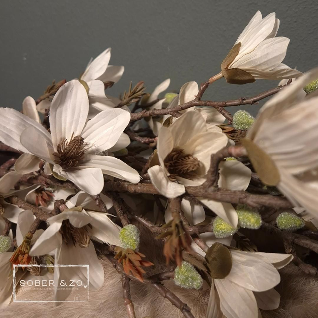 Mooie echt lijkende magnolia tak met witte bloesems van Countryfield.
