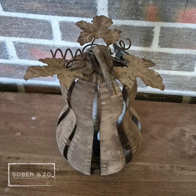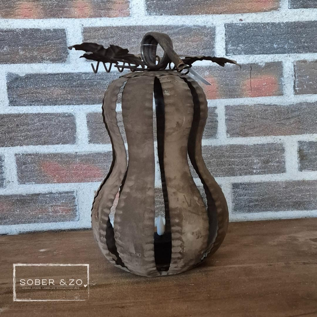 Haal het najaar in huis met deze mooie metalen flespompoen! De onderzijde is open te maken zodat je hier een waxinelichtje of mooie ledkaars in kunt doen.