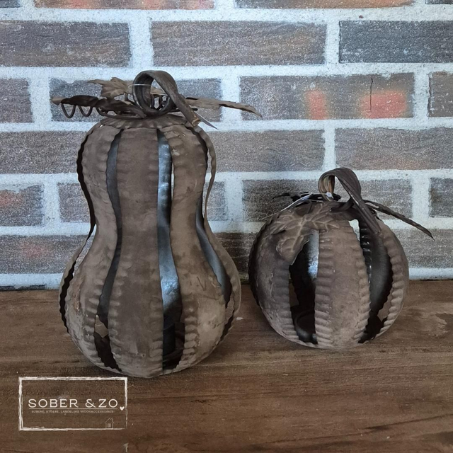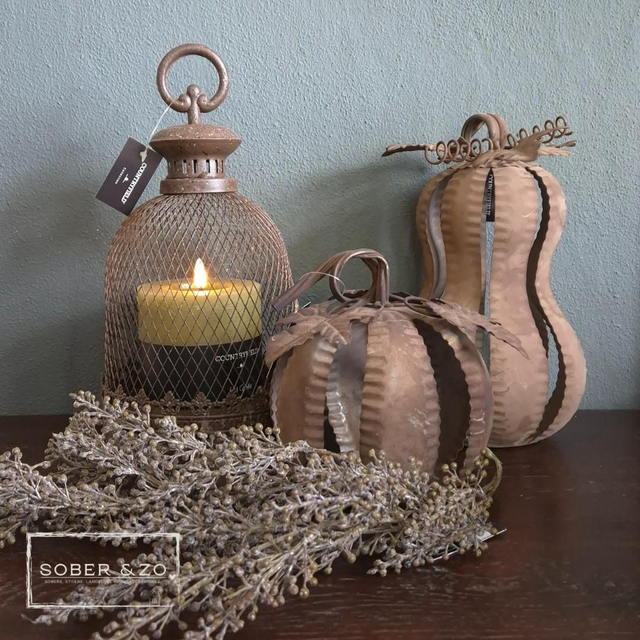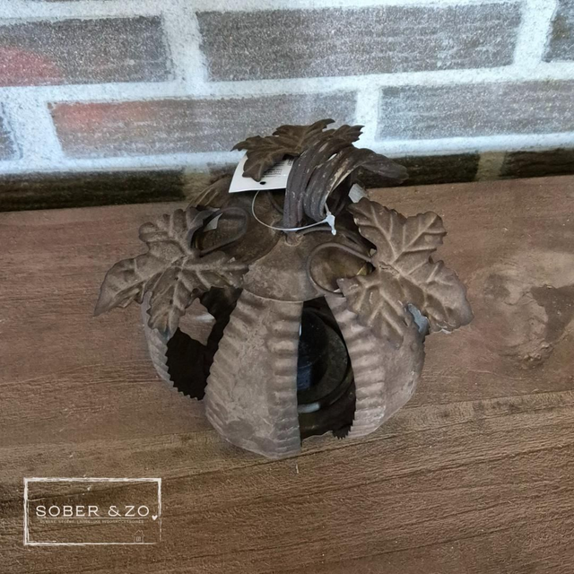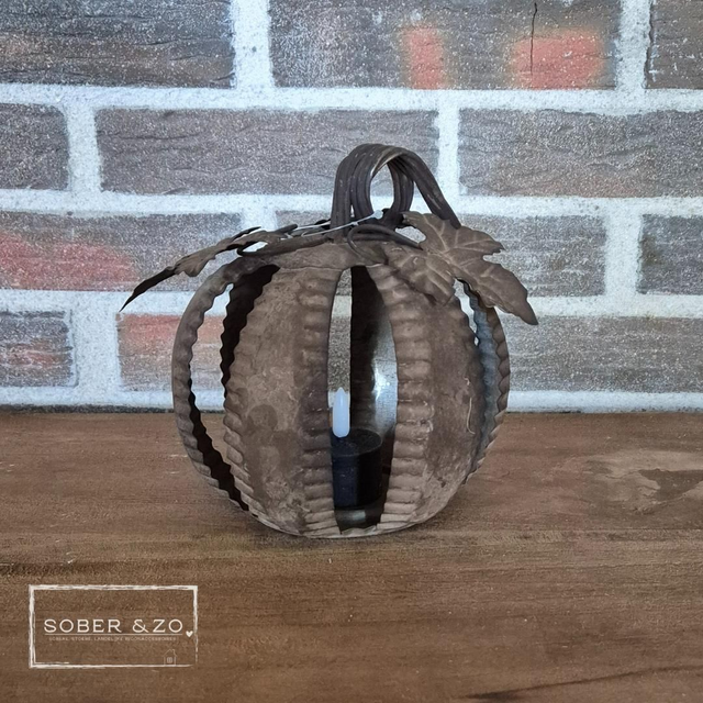 Haal het najaar in huis met deze mooie ronde metalen pompoen! De onderzijde is open te maken zodat je hier een waxinelichtje of mooie ledkaars in kunt doen.