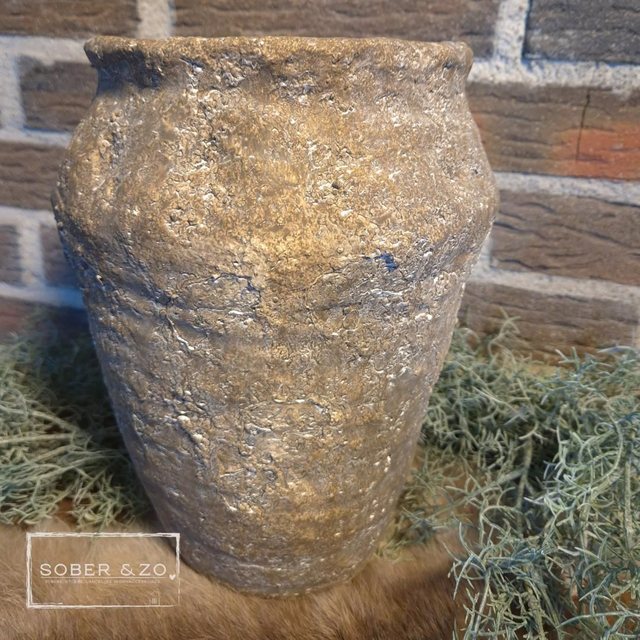 Mooie stenen vaas 'Bassie'. Zandkleurig.
