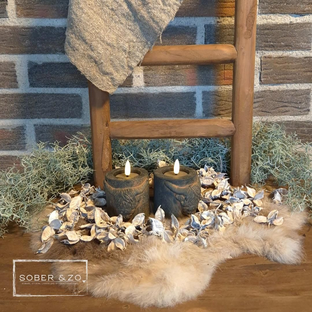 Mooie zware stenen waxinelichthouder met de afbeelding van de kop van een hooglander.