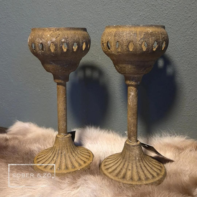 Waxinelichthouder metaal, bruin. Maat M