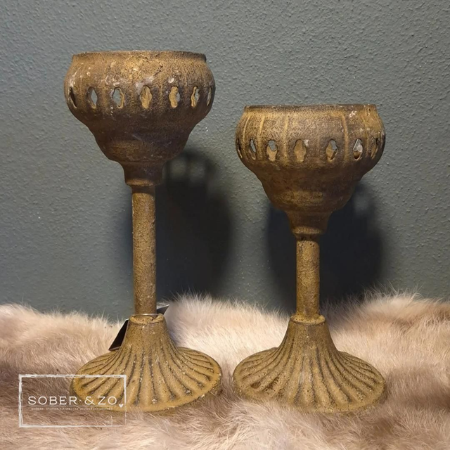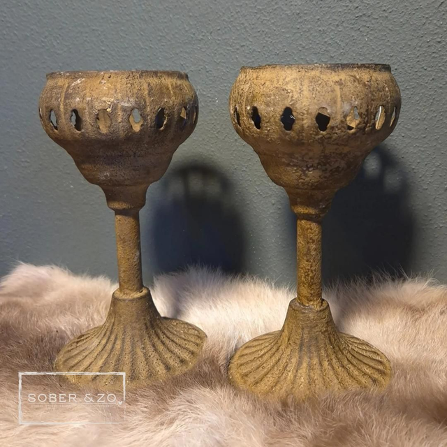Waxinelichthouder metaal, bruin. Maat S