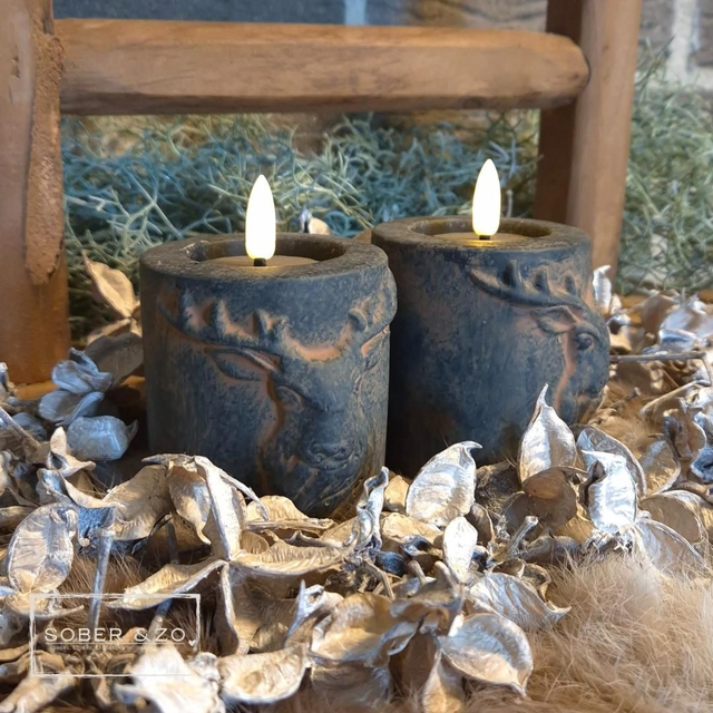 Mooie zware stenen waxinelichthouder met de afbeelding van de kop van een rendier.